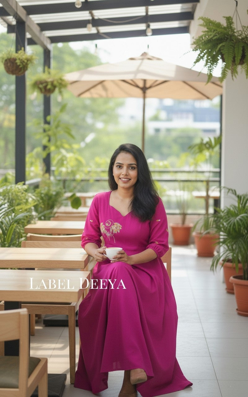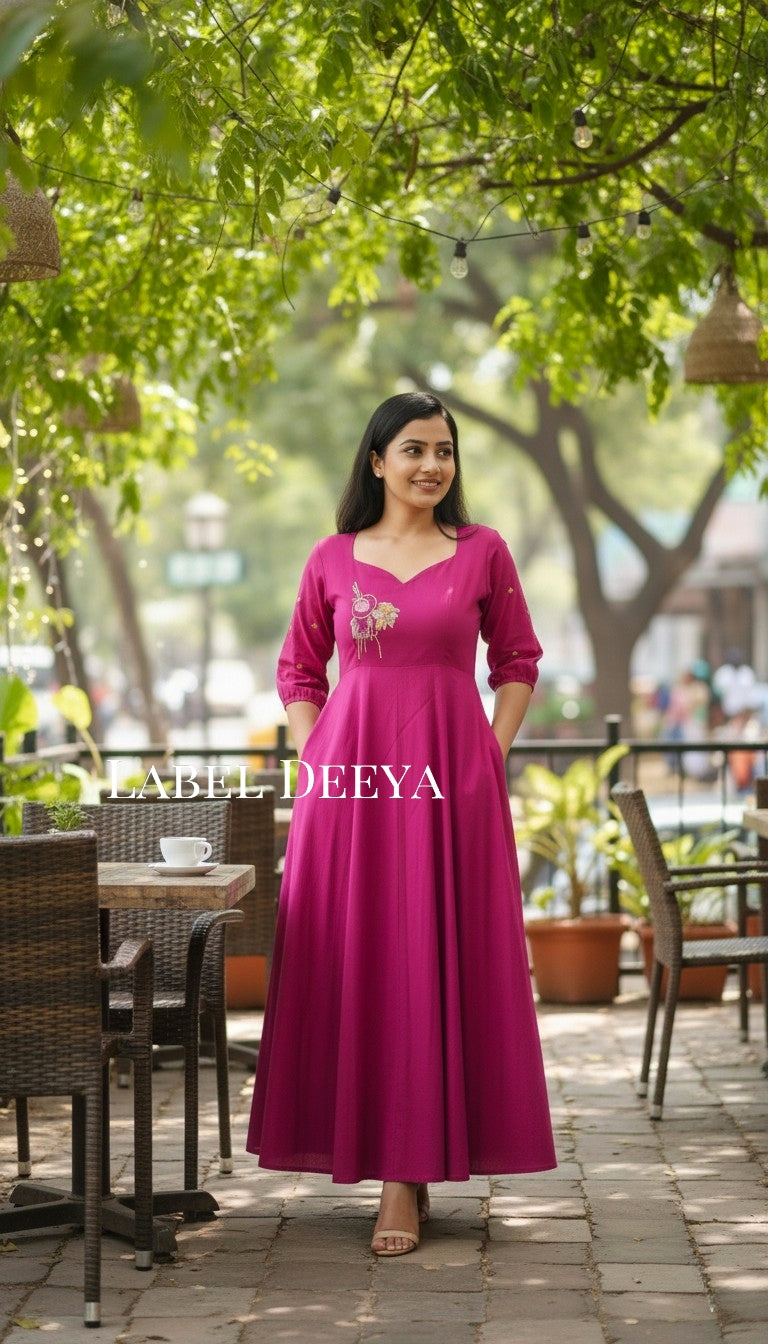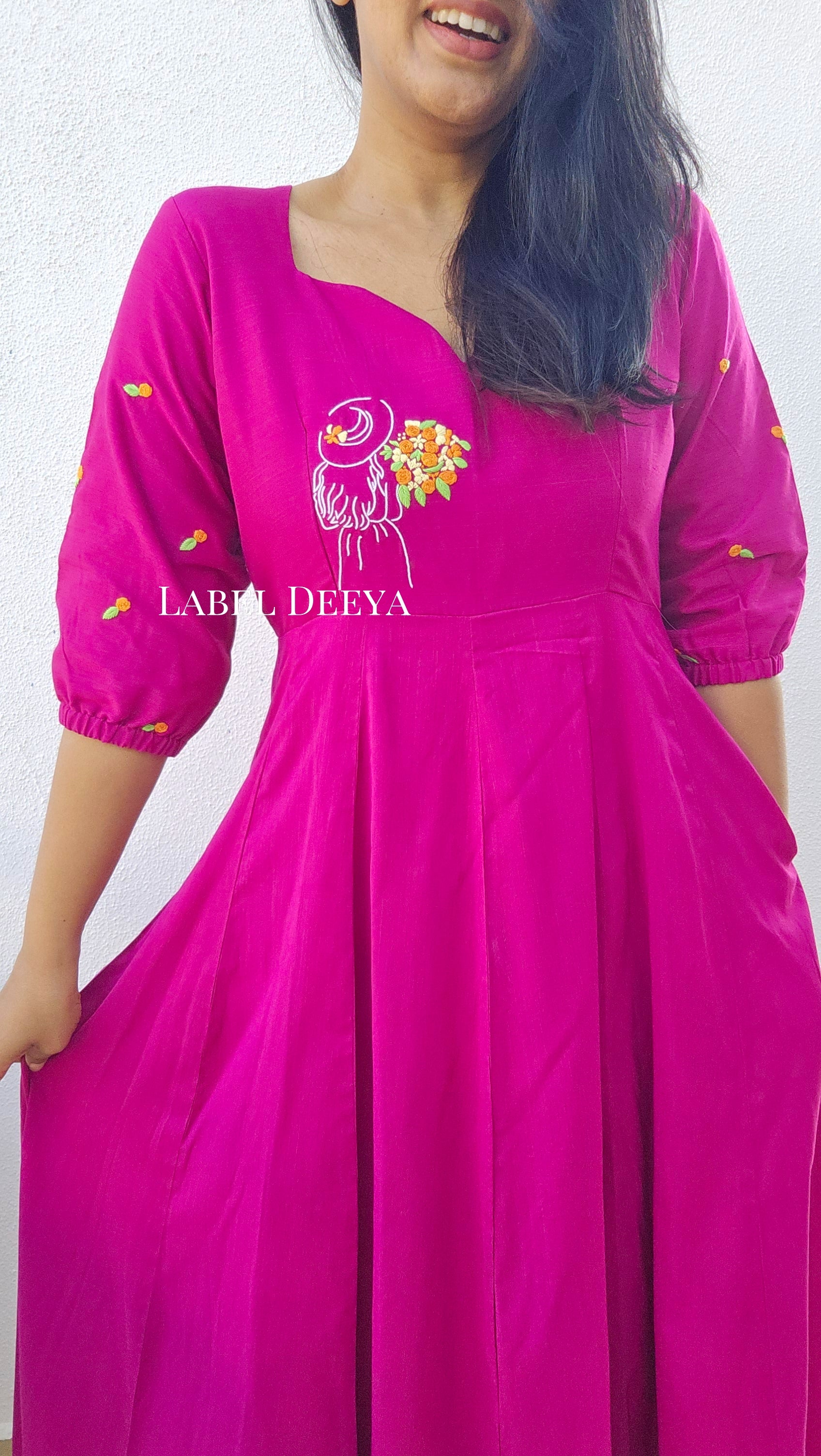 Each gown in our new collection is a meticulously crafted on luxurious, flowing Raw silk. The delicate, detailed embroidery, inspired by women figurines, transforms these dresses into wearable masterpieces of textile art.