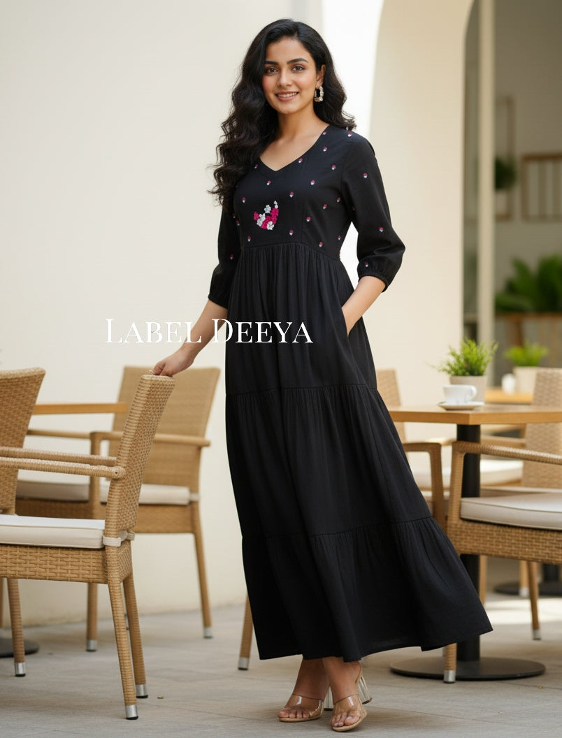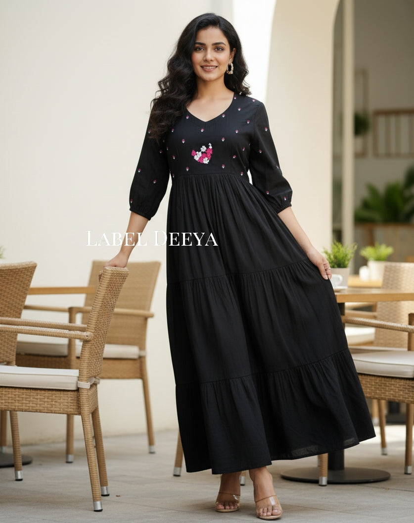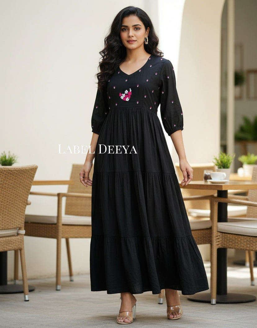 This beautiful outfit is made in pure mul cotton, hand dyed and hand embroidered.