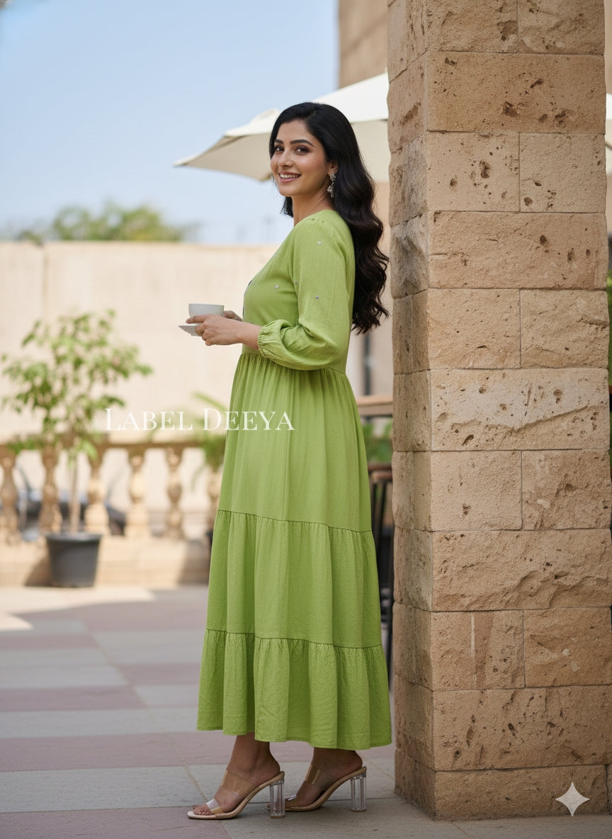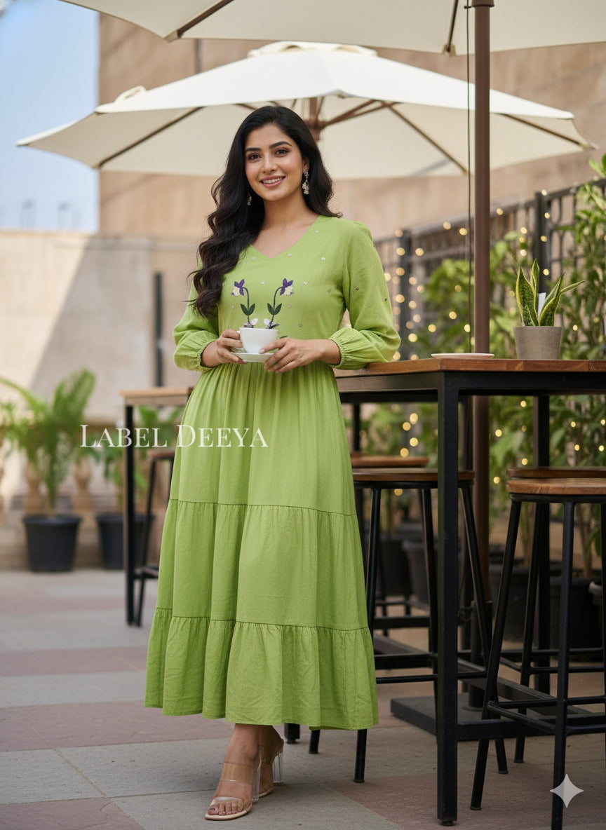 This beautiful outfit is made in pure mul cotton, hand dyed and hand embroidered.